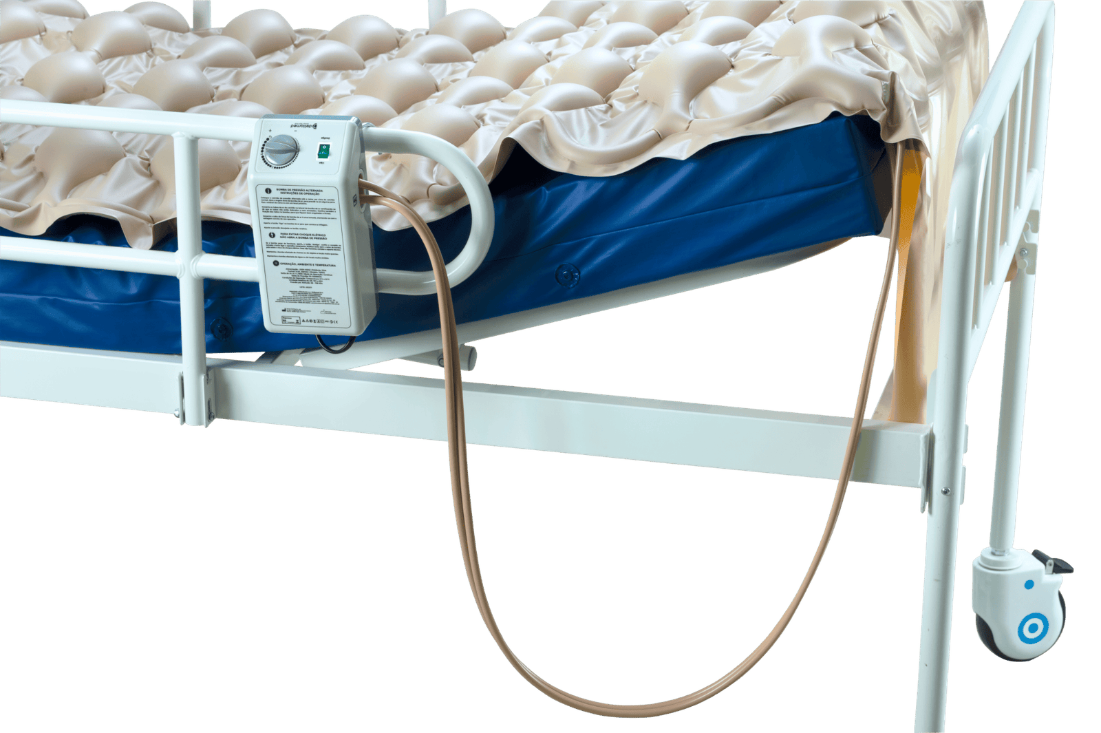 • 1 Motor/bomba elétrica com unidade de controle integrada, com proteção IP21 (contra condensação), com alça dupla para pendurar na cama ou apoiar em bancada;