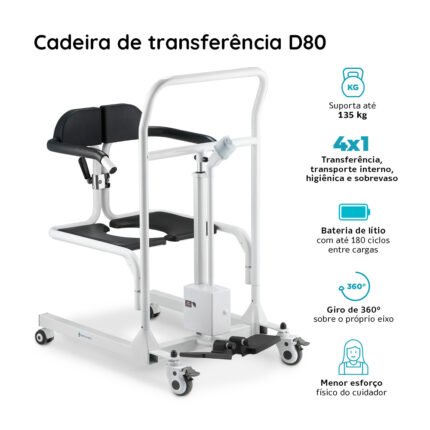 CADEIRA DE TRANSFERÊNCIA MULTIUSO COM ELEVAÇÃO ELETRÔNICA ATÉ 135 KG – D80 DELLAMED